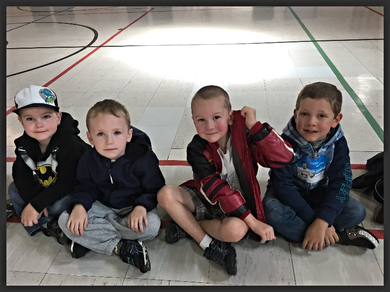 Patiently waiting for the entire school to join us in the gym so we can start our Terry Fox Walk.